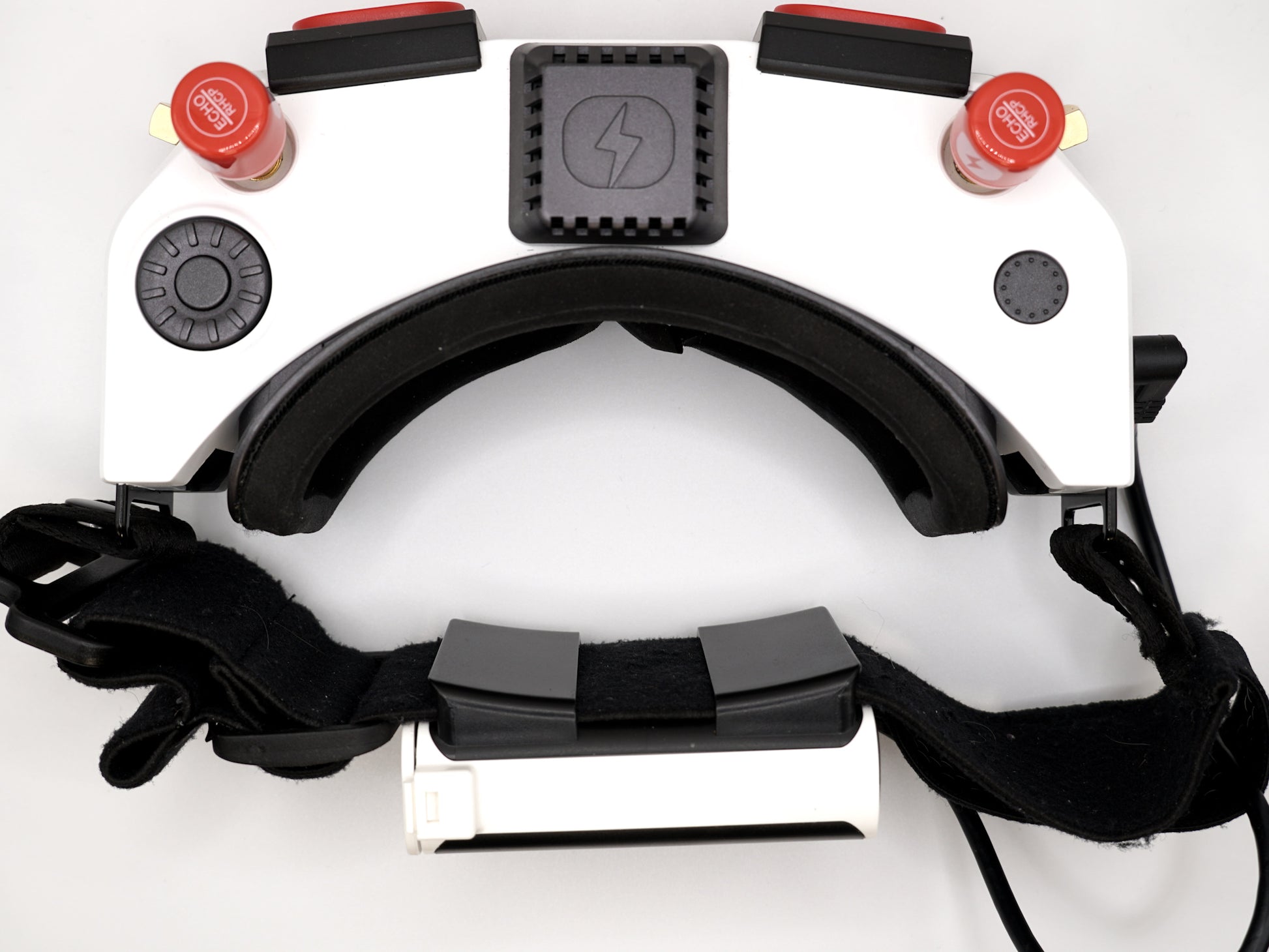 Integrated head-strap clips allow the battery to mount on the back of the goggles. This balances the weight, reduces neck strain, and improves antenna orientation. -